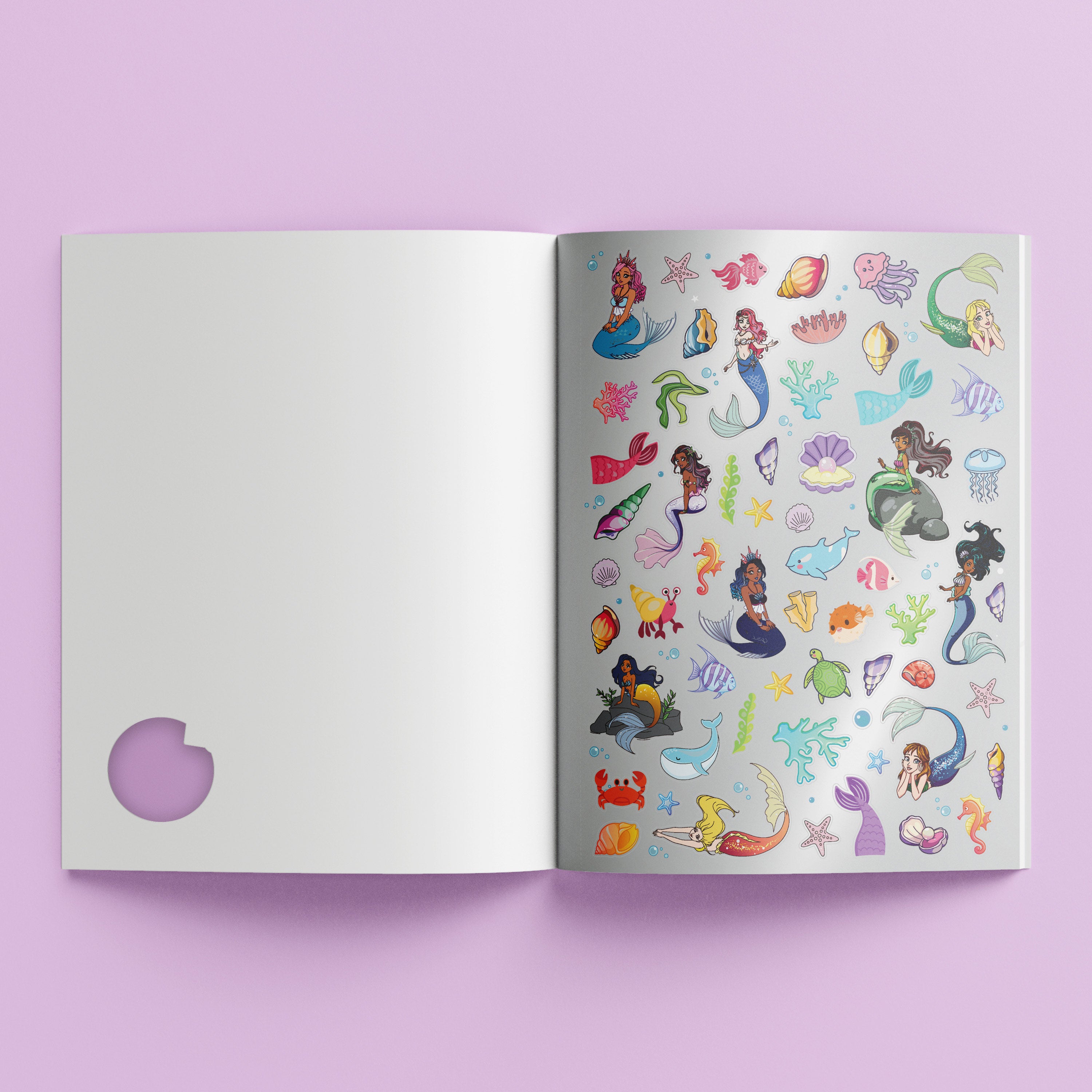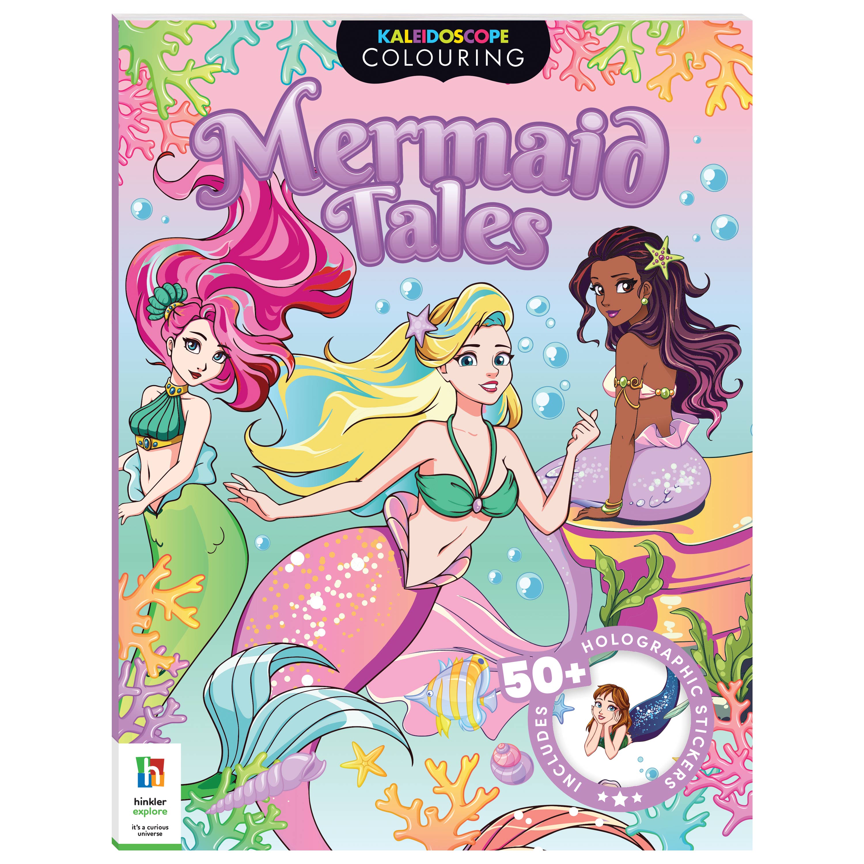 Dive deep into a world of magic and fun, where mermaids laugh and play! This book features 48 enchanting underwater scenes to colour and bring to life. Plus, get ready to shine with over 50 shimmering holographic stickers!